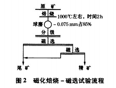 由于采用該工藝需要購買價格較高的磁選機(jī)設(shè)備,而且經(jīng)過磁選的鐵精礦品位不是很高,其褐鐵礦售價也不是高,產(chǎn)品只能出售給小型鋼鐵企業(yè)。為了提高產(chǎn)品質(zhì)量,在經(jīng)過強(qiáng)磁選的基礎(chǔ)上還進(jìn)行了磁化焙燒試驗。