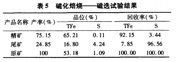 表5 磁化焙燒-磁選試驗結(jié)果