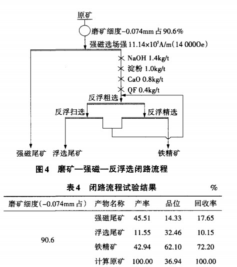 3.4、磨礦-強磁-反浮選閉路流程試驗